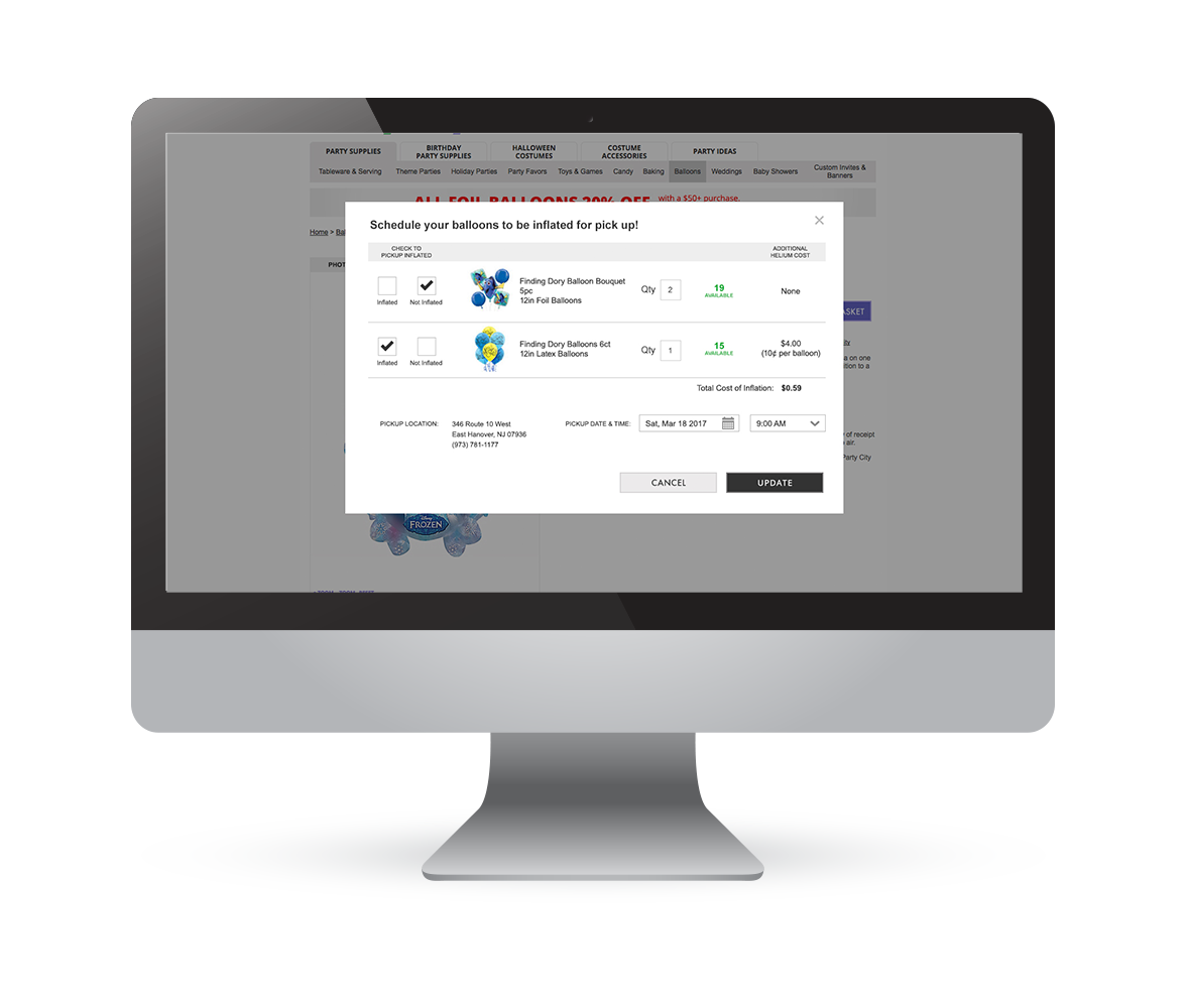 Party City wanted to expand their balloon business and one way to do so was incorporate a scheduling feature with the BOPIS experience